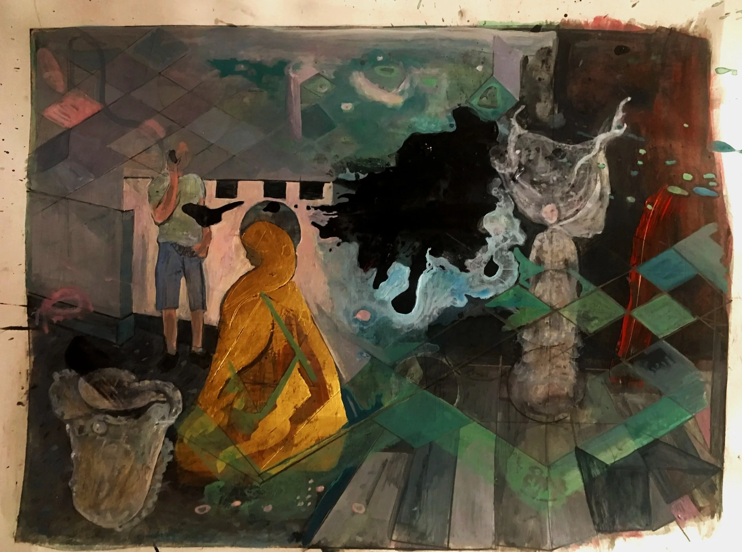 'deep waters'. print ink, acrylic, pencil on paper, 2022