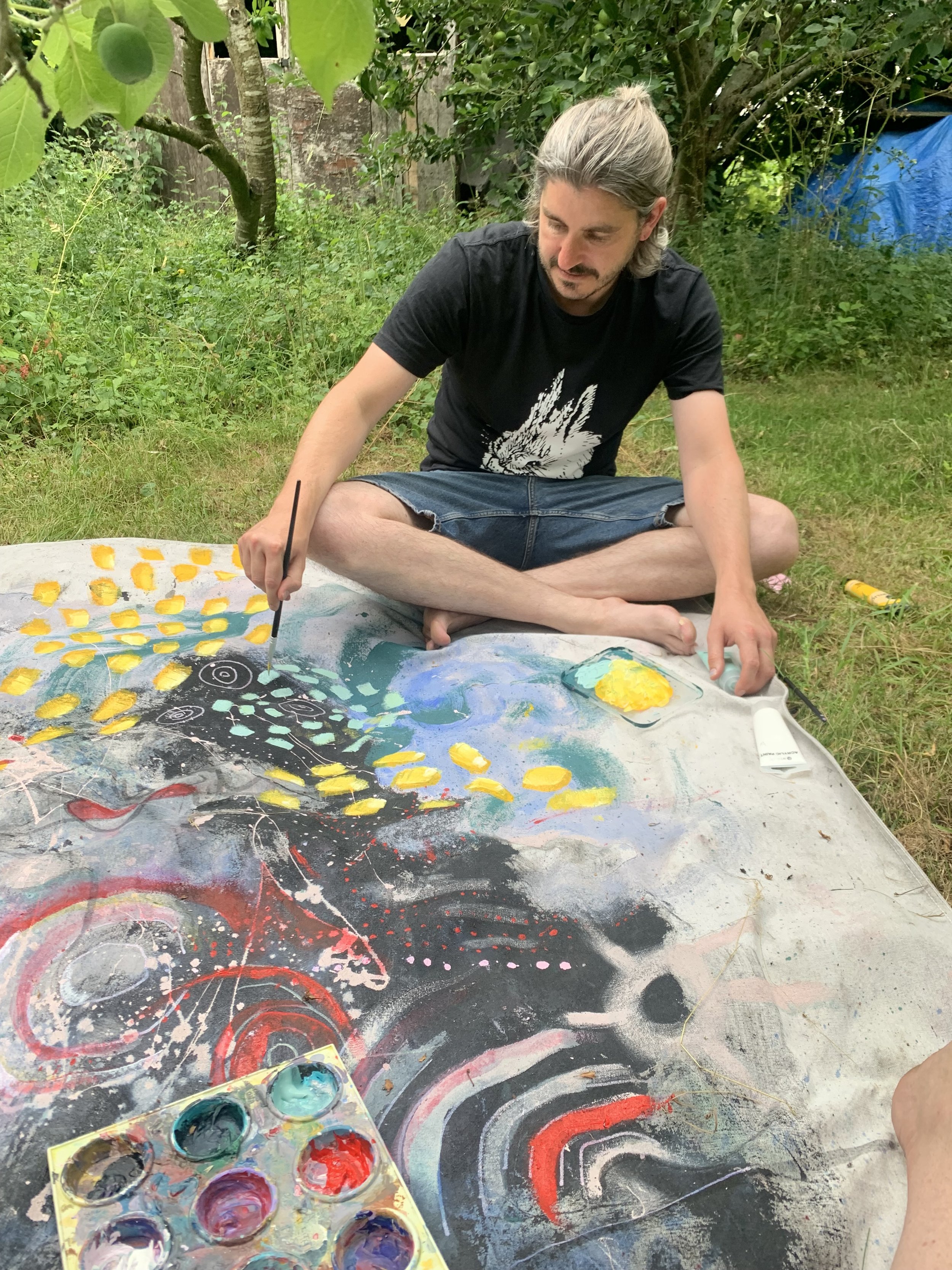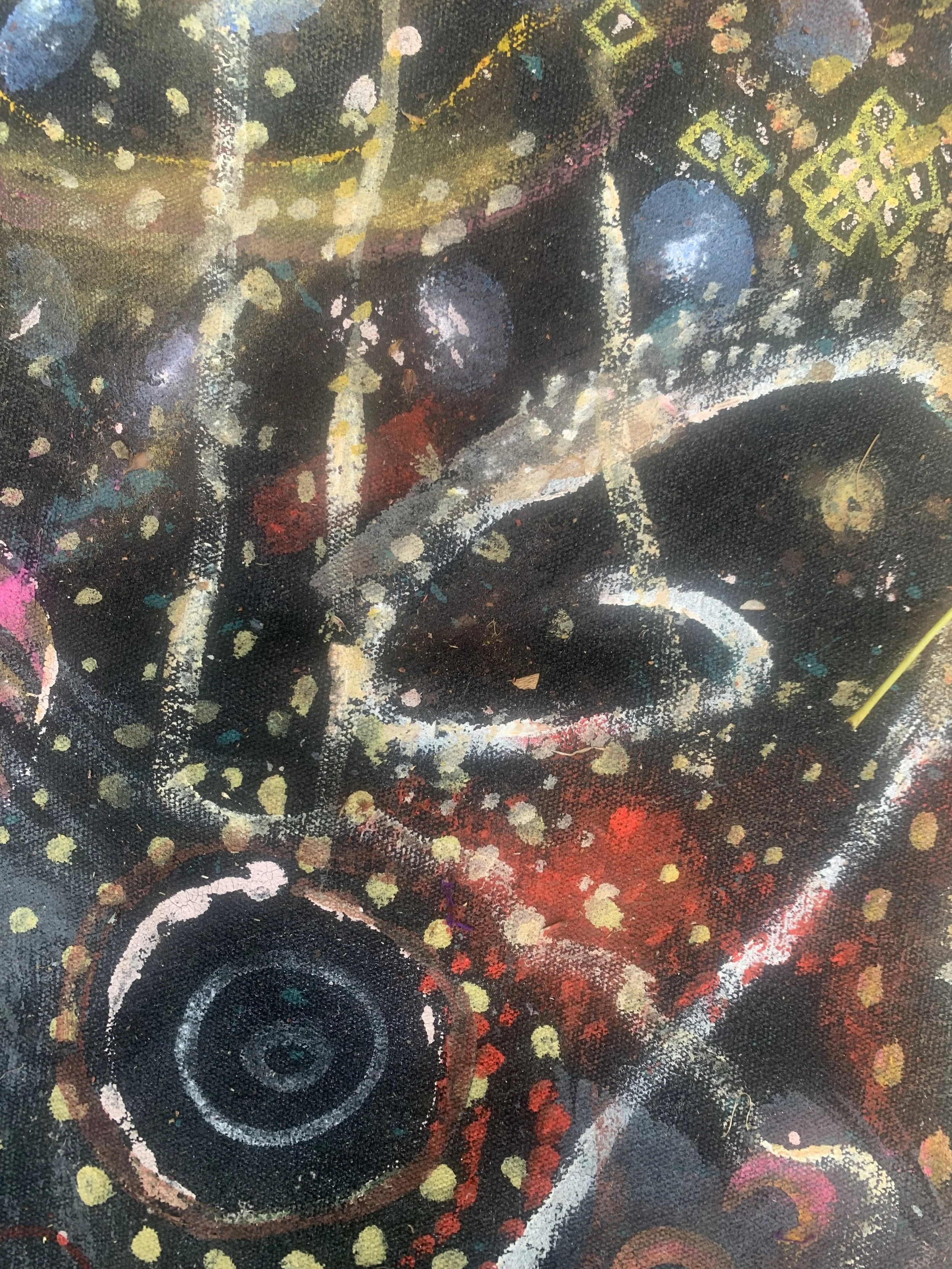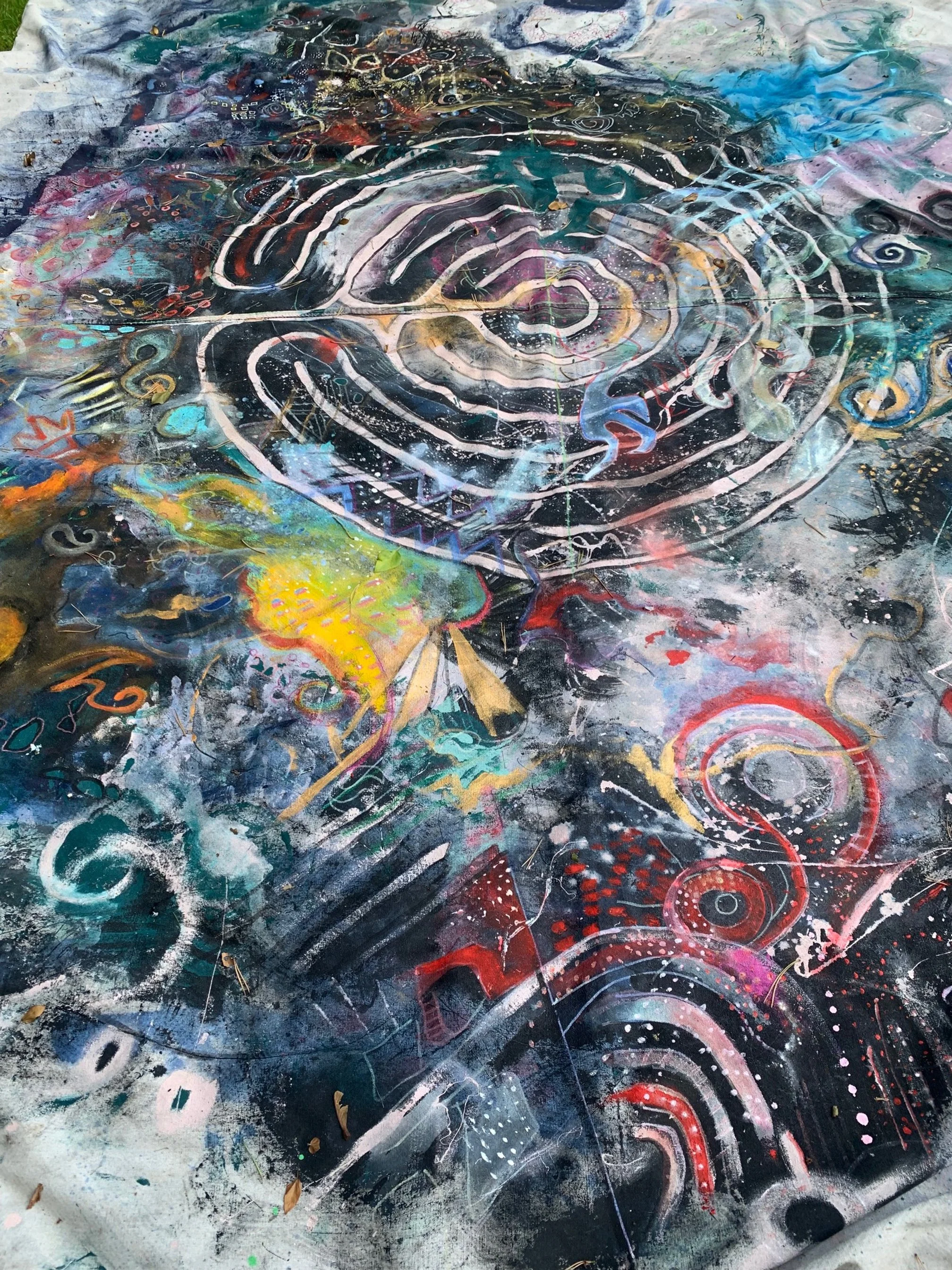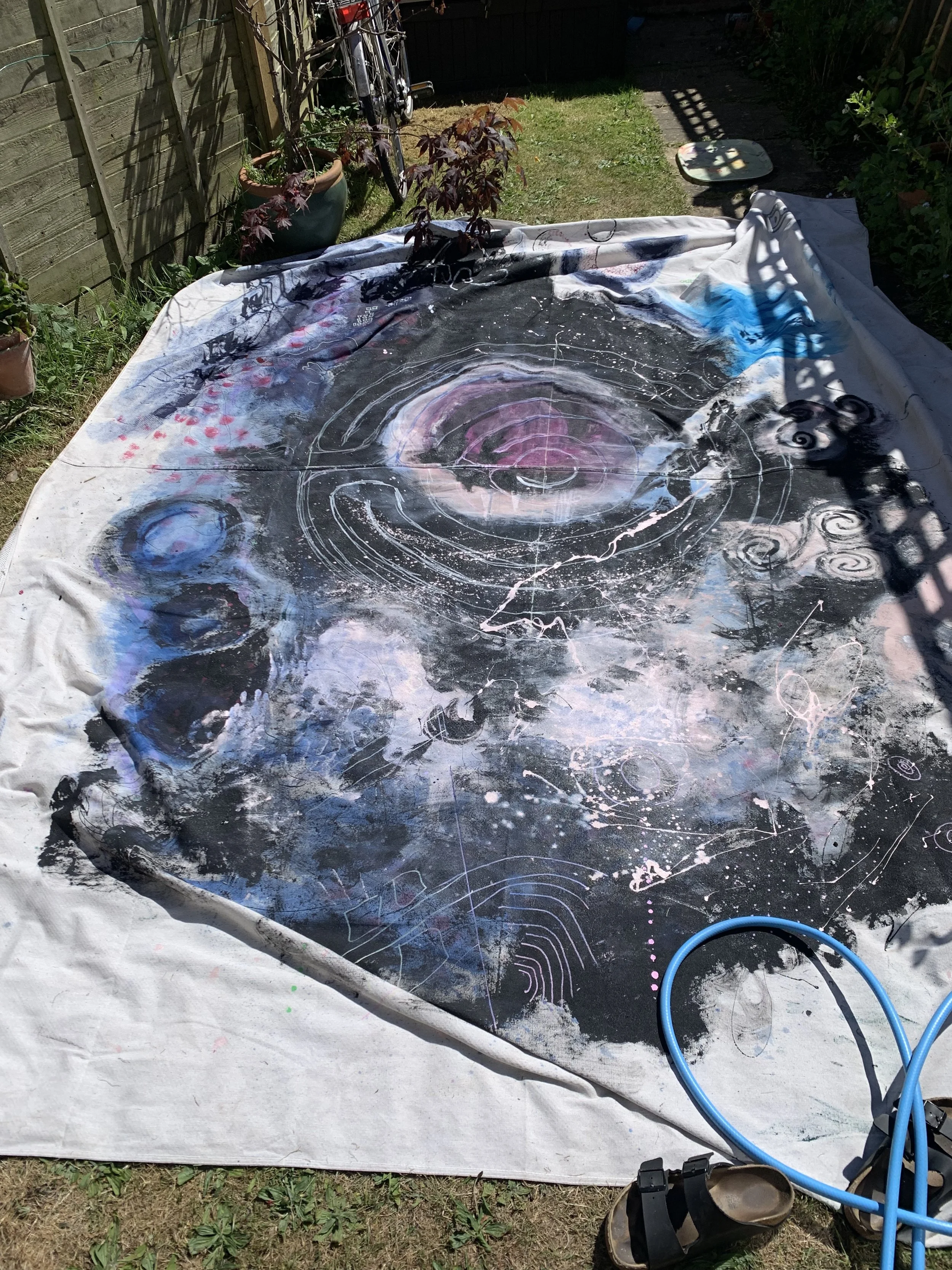 I was drawing a labyrinth in my sketchbook when I noticed on the rug before me a Chinese dragon, prompting me to add it into the labyrinth