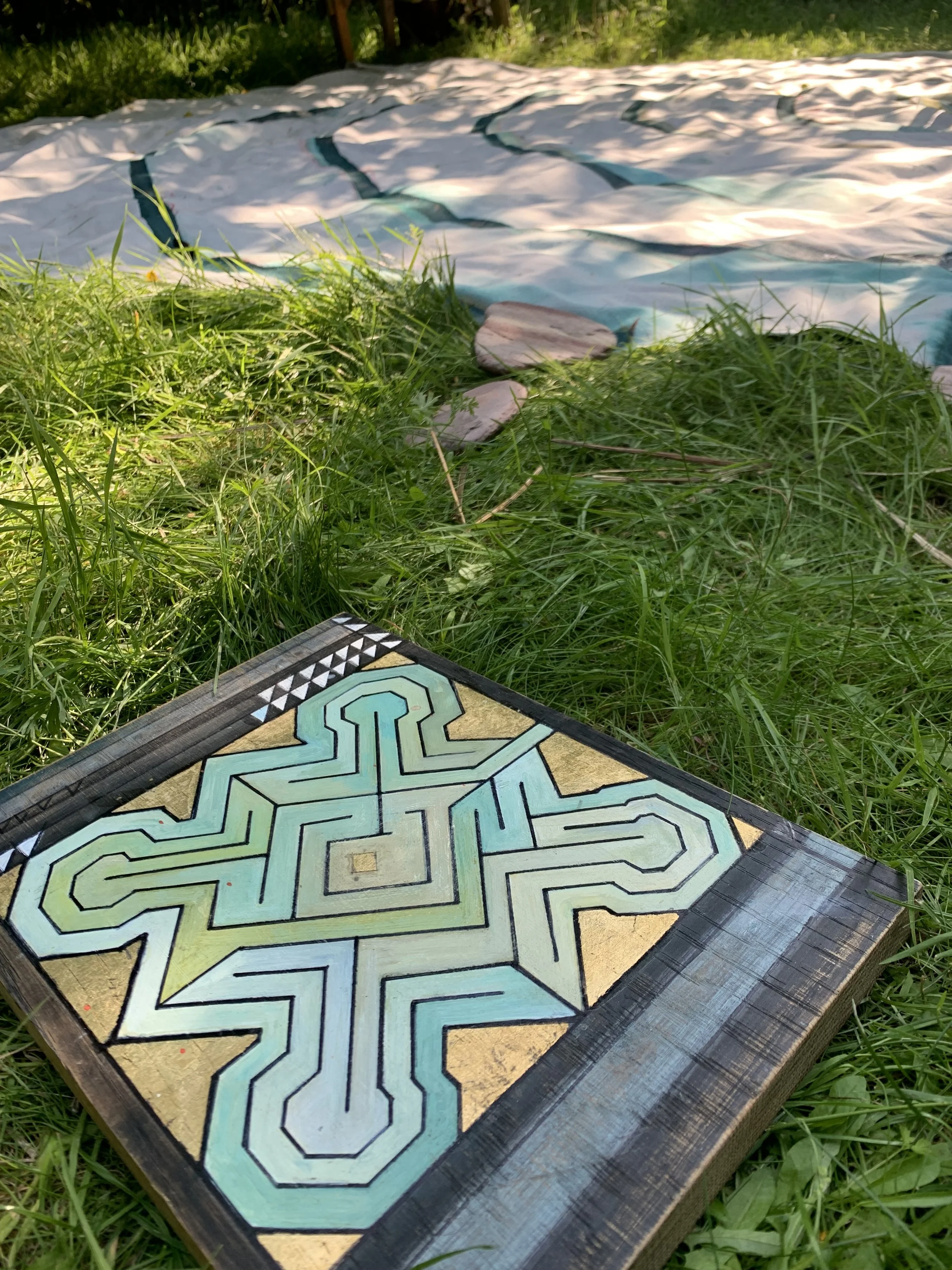 After visiting it I began to draw the Ely labyrinth over and over, on paper, on oak; becoming a beautiful ritual, etching its way into my psyche.