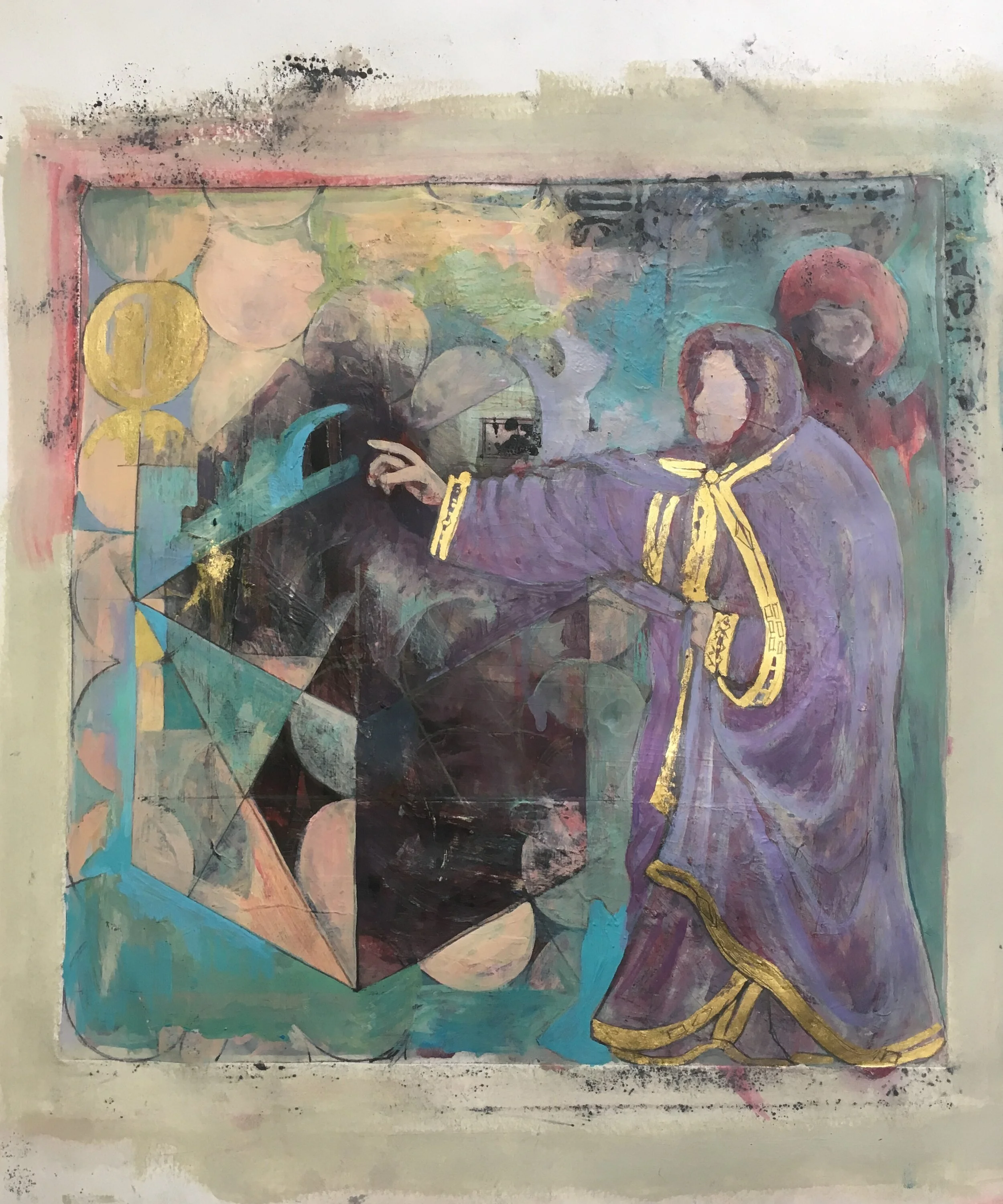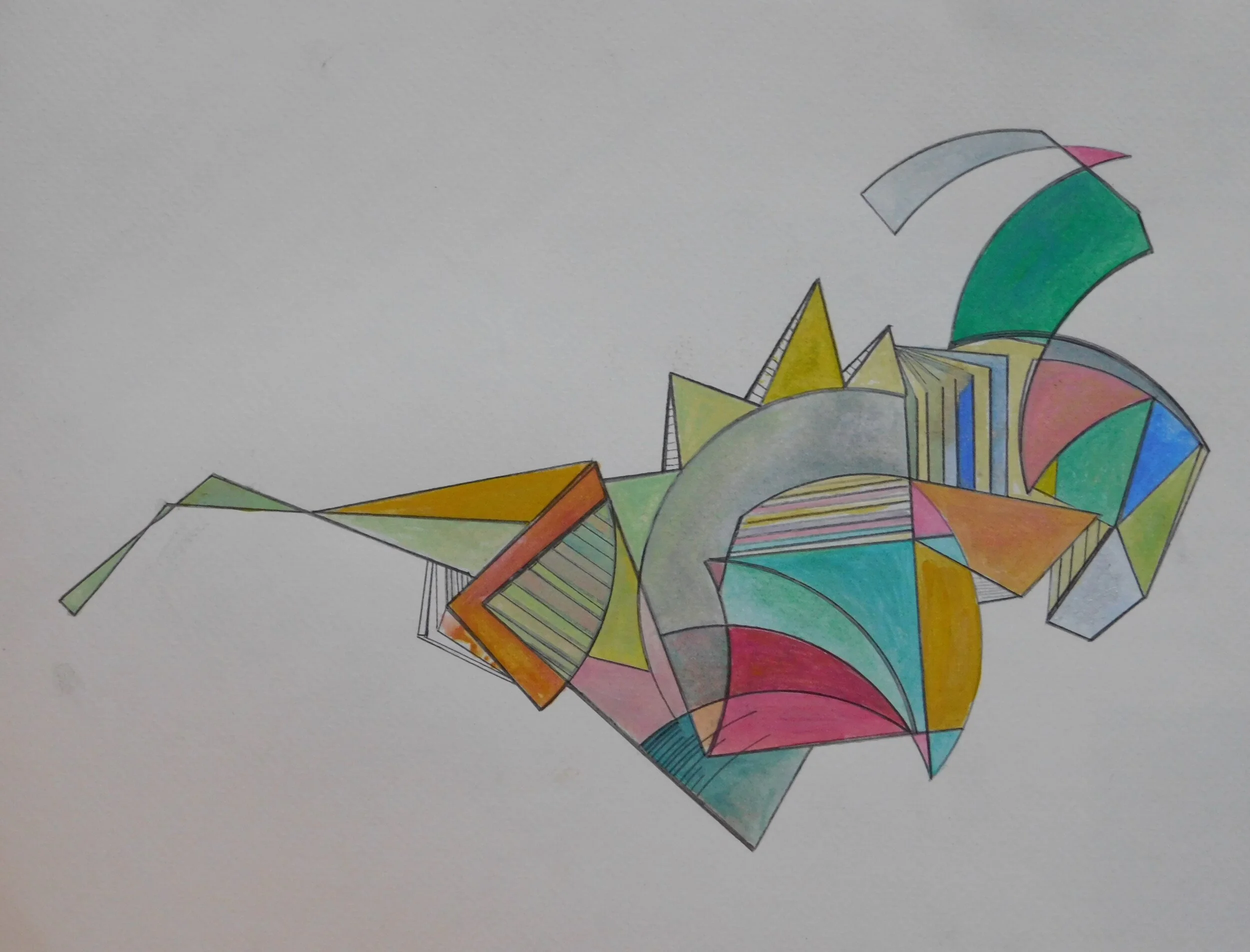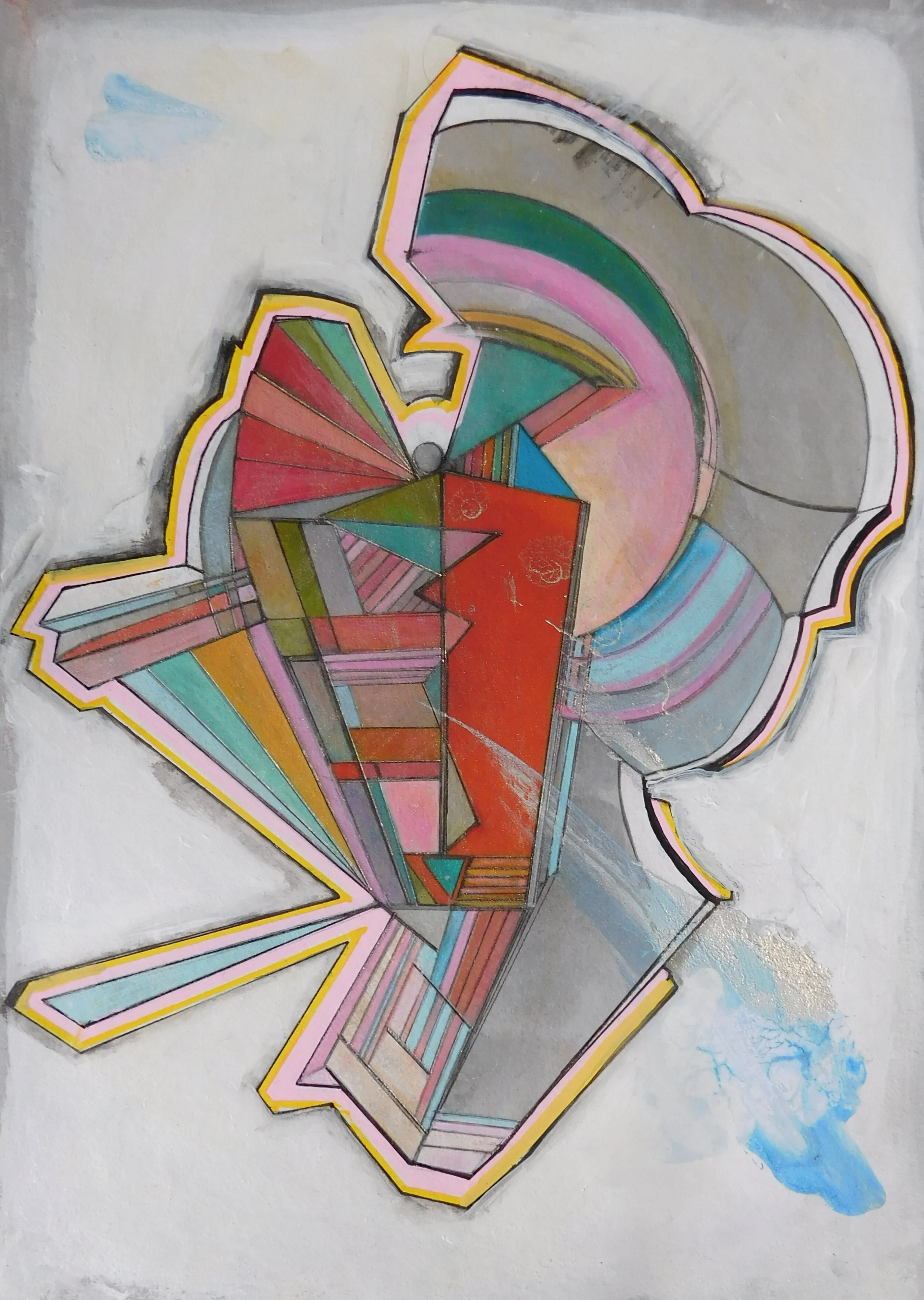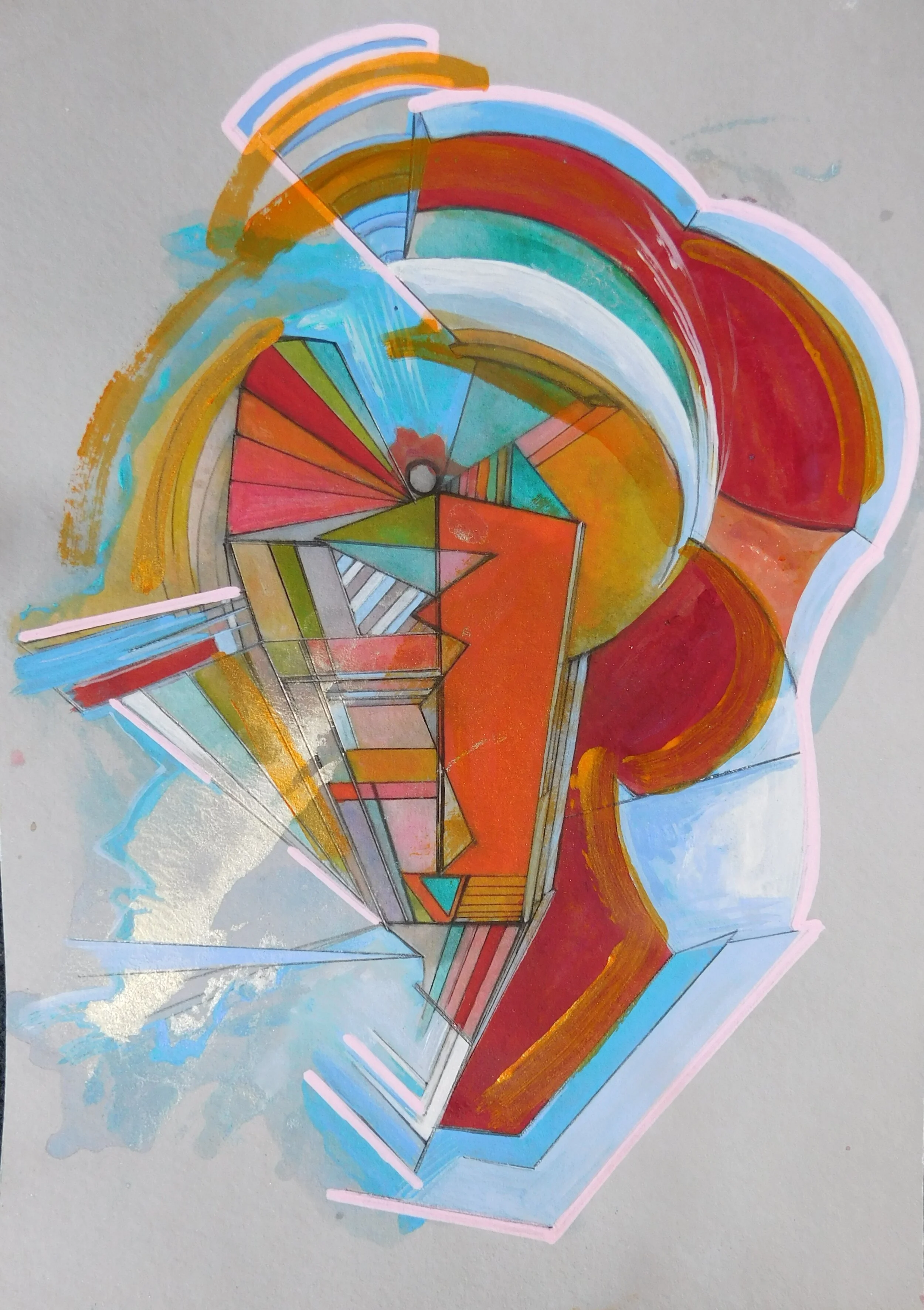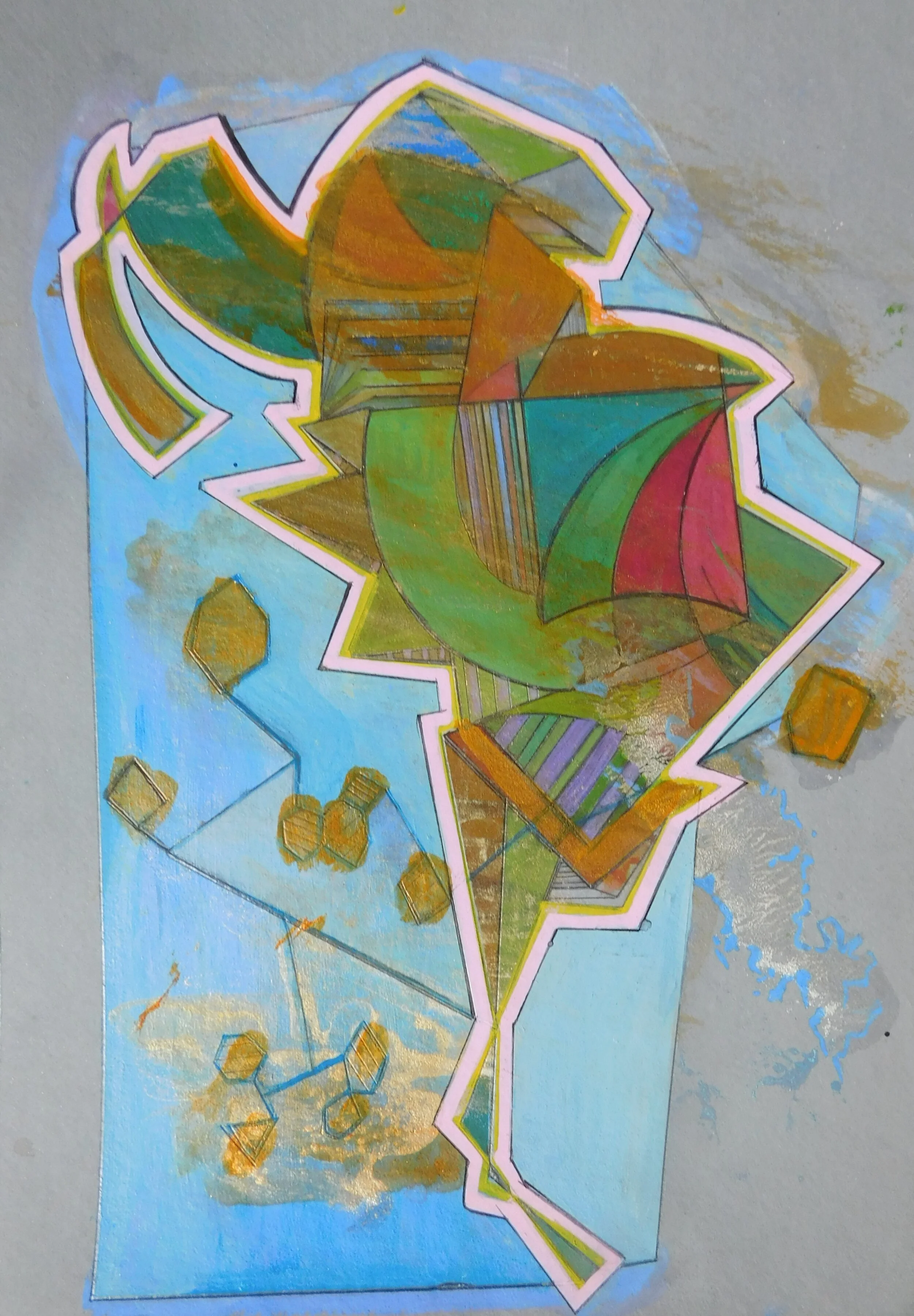 I bought a watercolour pad right before lockdown and began to use it as the weeks progressed. I started with pencil and acrylic paint, which evolved into prints of the original drawings, and then painting onto the prints using transparent gesso, ink pens and acrylic paint, reworking the originals and creating something new.