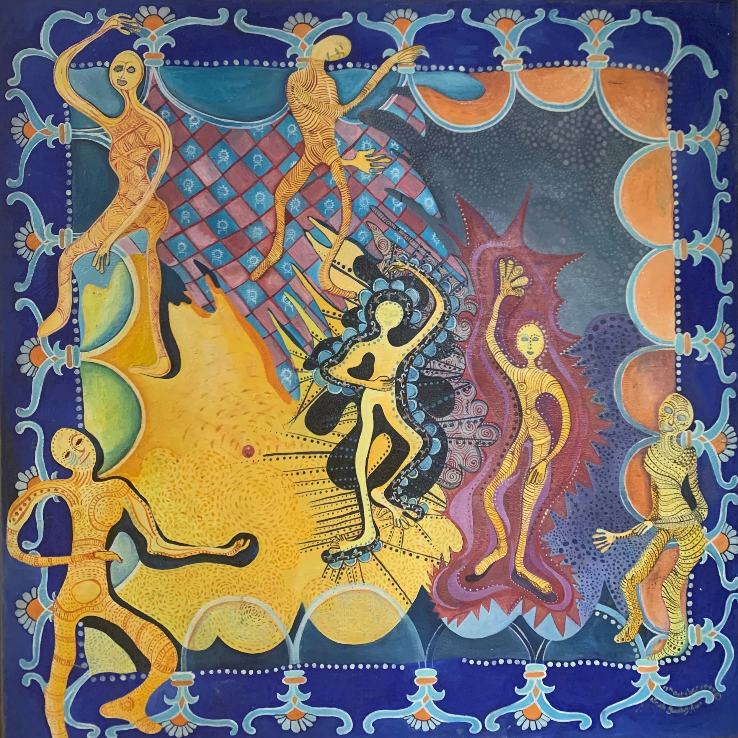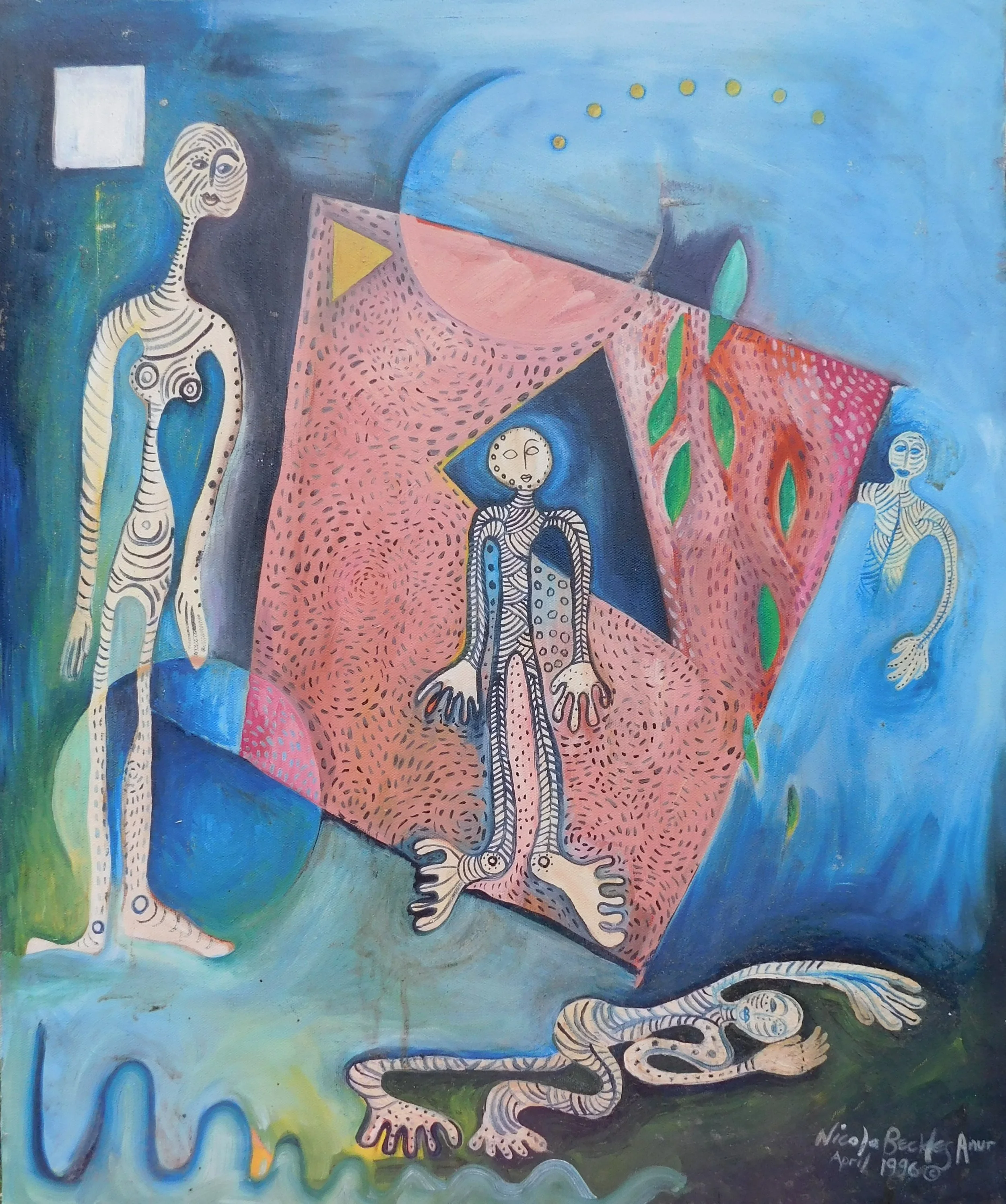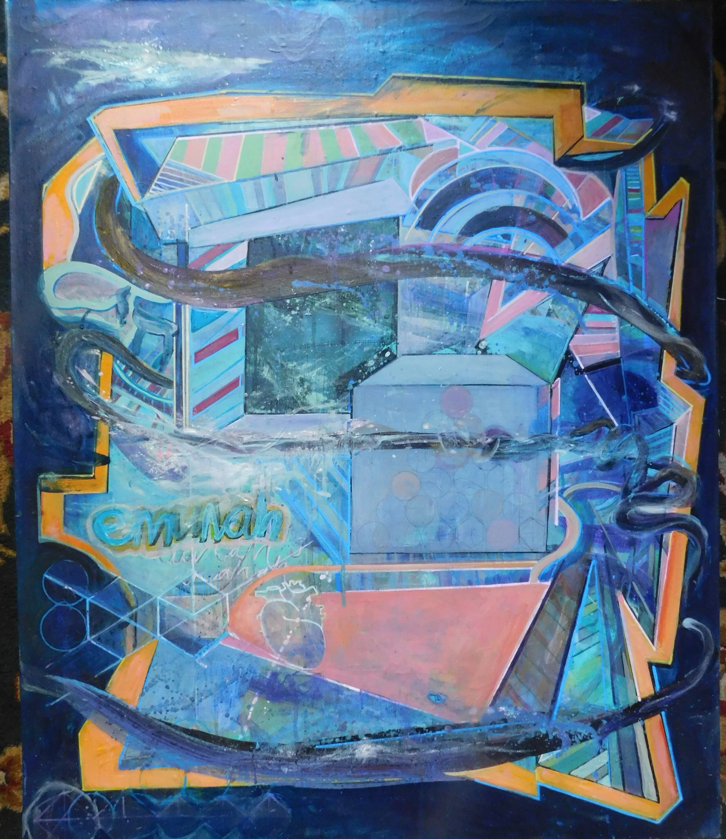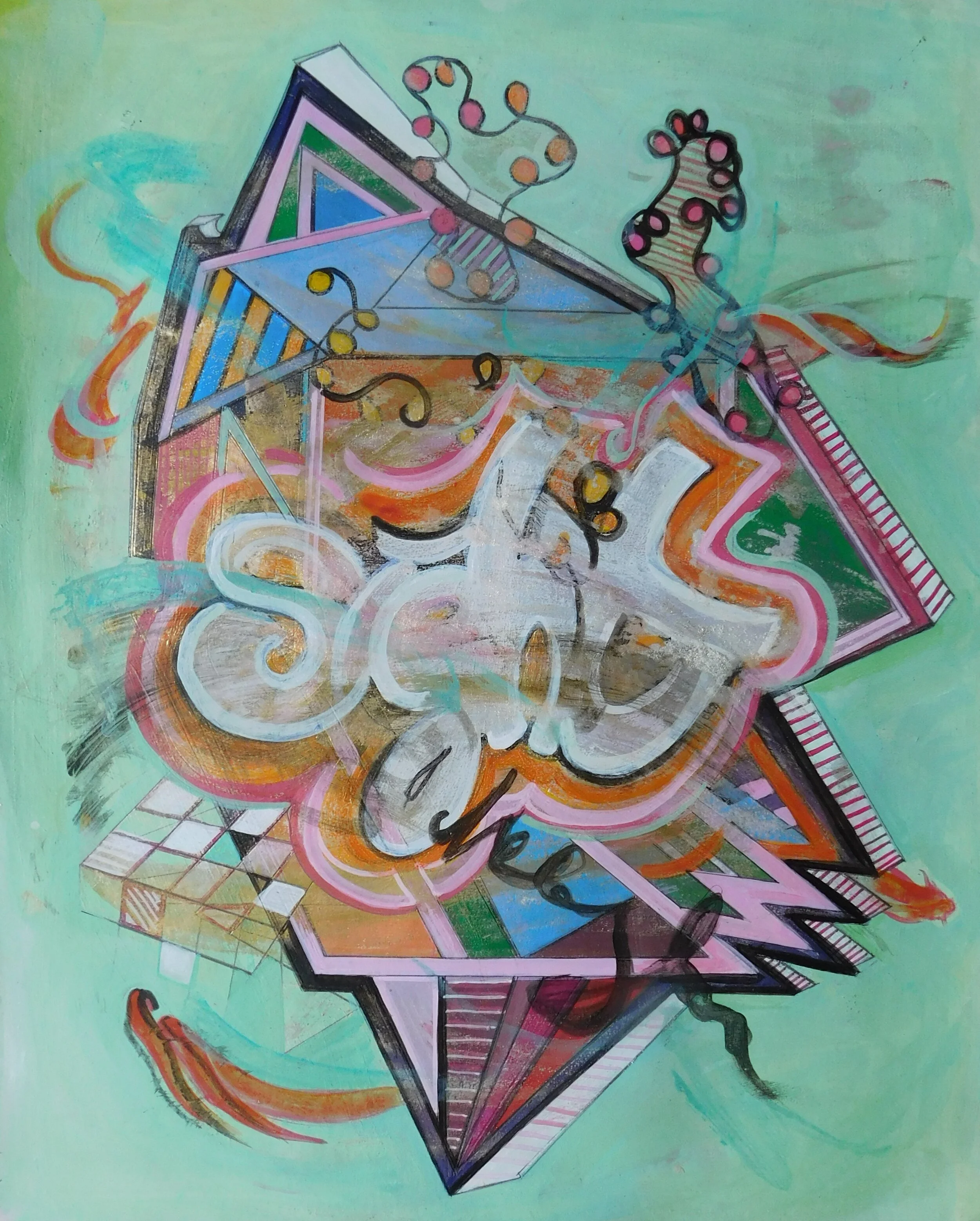 2020, the year of lock down. Paintings on canvas, wood and paper; using acrylics, gouache, and ink pens. The themes are set around graffiti, DNA, mythical, and sacred geometry.