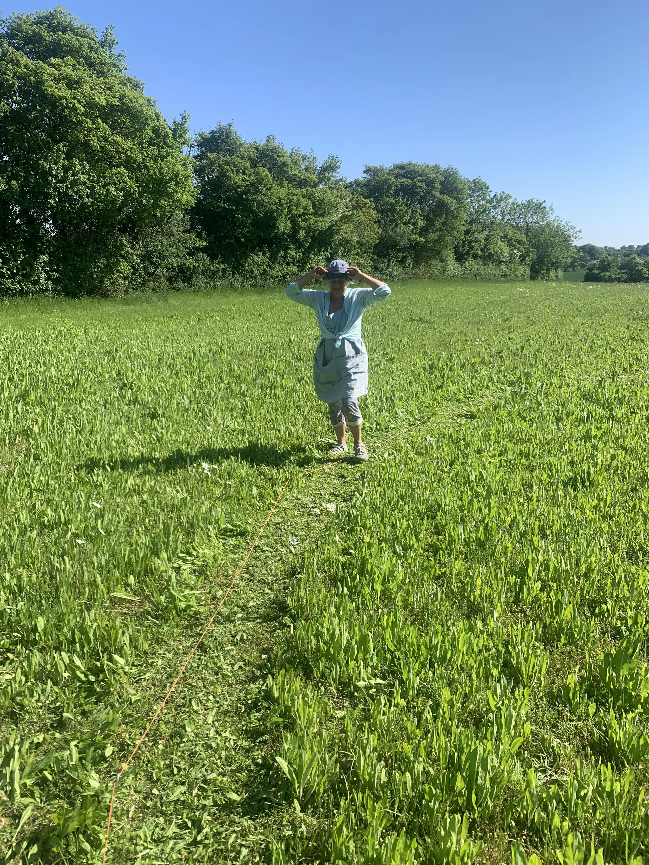 From my perspective the place that was chosen was a meadow, that’s what it looked like to me, and I kept referring to it as such. It felt like one to me because of the wild grasses and plants swaying in the breeze in the expansive space, but Sue said it’s not really a meadow because that would mean it was near to water. She said it was a field, therefore it became ‘Field Labyrinth’.
