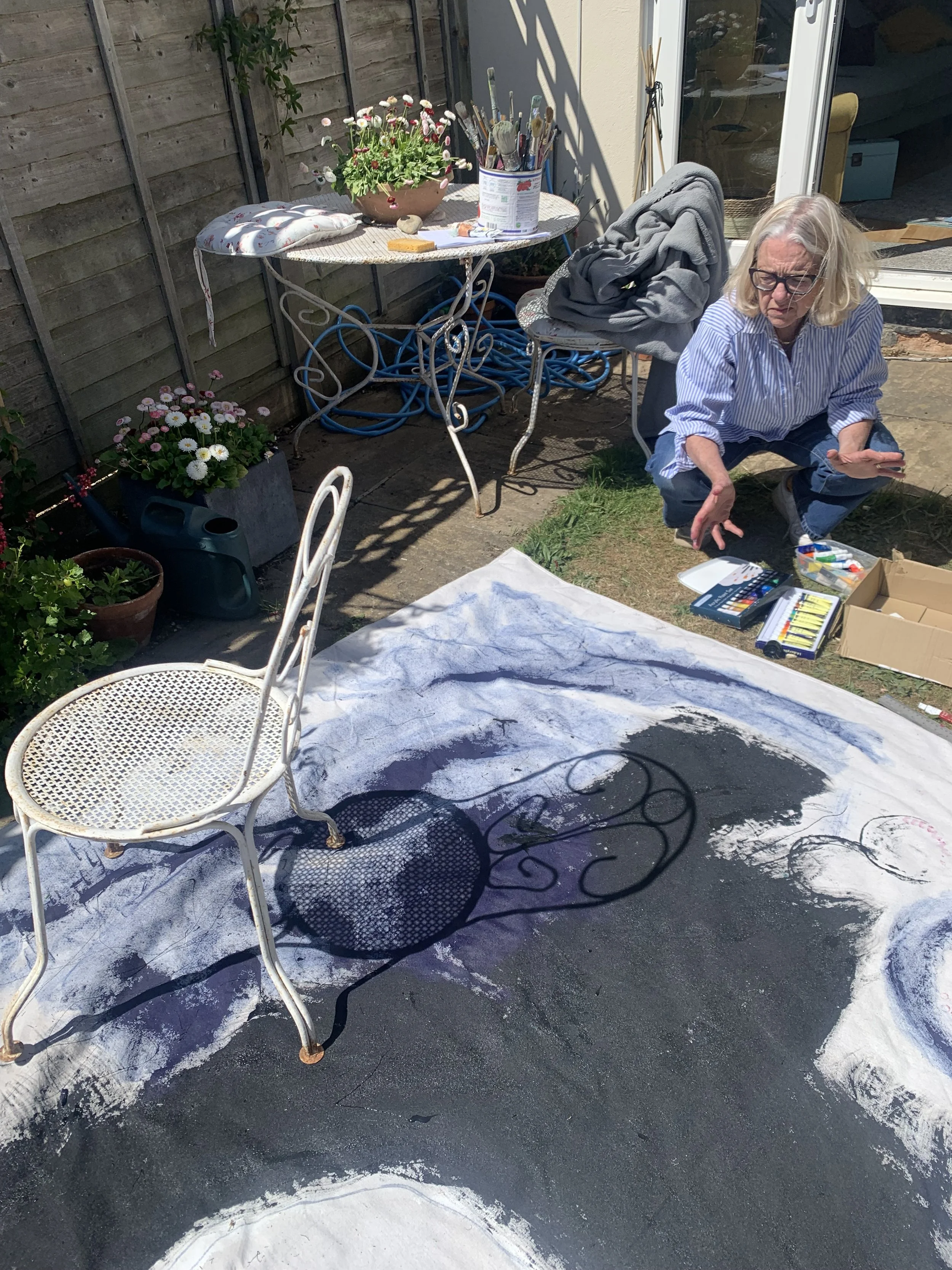 I carry in the back of my mind an image of Aboriginal People in Australia sitting on the ground working communally on a painting. It’s years ago that I would have first seen a photo of this, but I have carried it in my imagination since then, often having the urge to paint large pieces on the floor, where people can gather, sitting, conversing and working together.